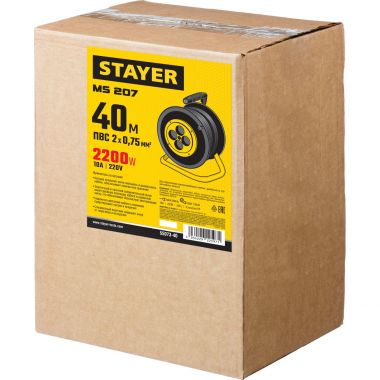 Удлинитель на катушке MS 207, 40 м, 2200 Вт, 4 гнезда, ПВС 2x0,75 мм2, STAYER 55073-40